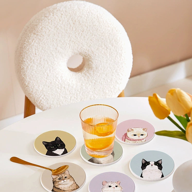 Add a splash of cuteness to your table with these absorbent cartoon cat coasters made from natural diatomaceous earth. They soak up spills in seconds and keep your drinks steady and stylish.