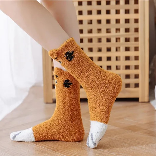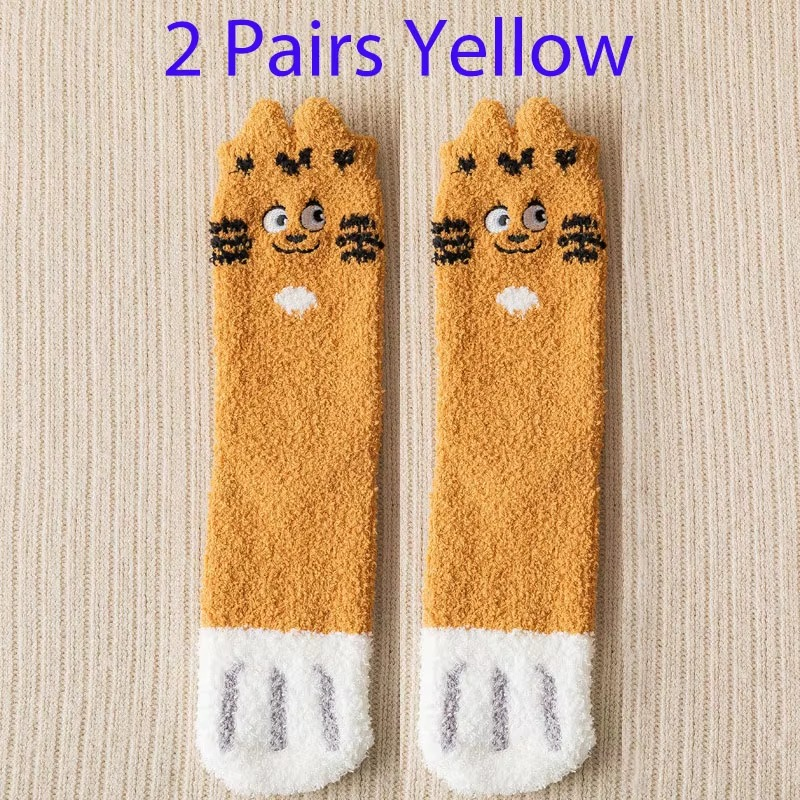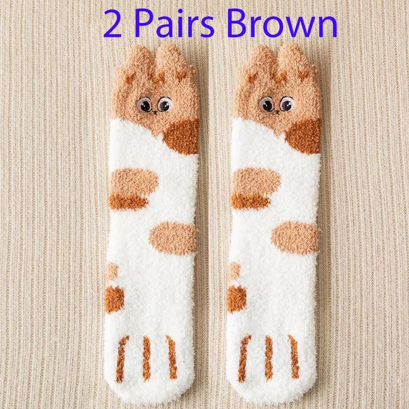 Package Includes: 2 Pairs Cat Paws Fuzzy Socks