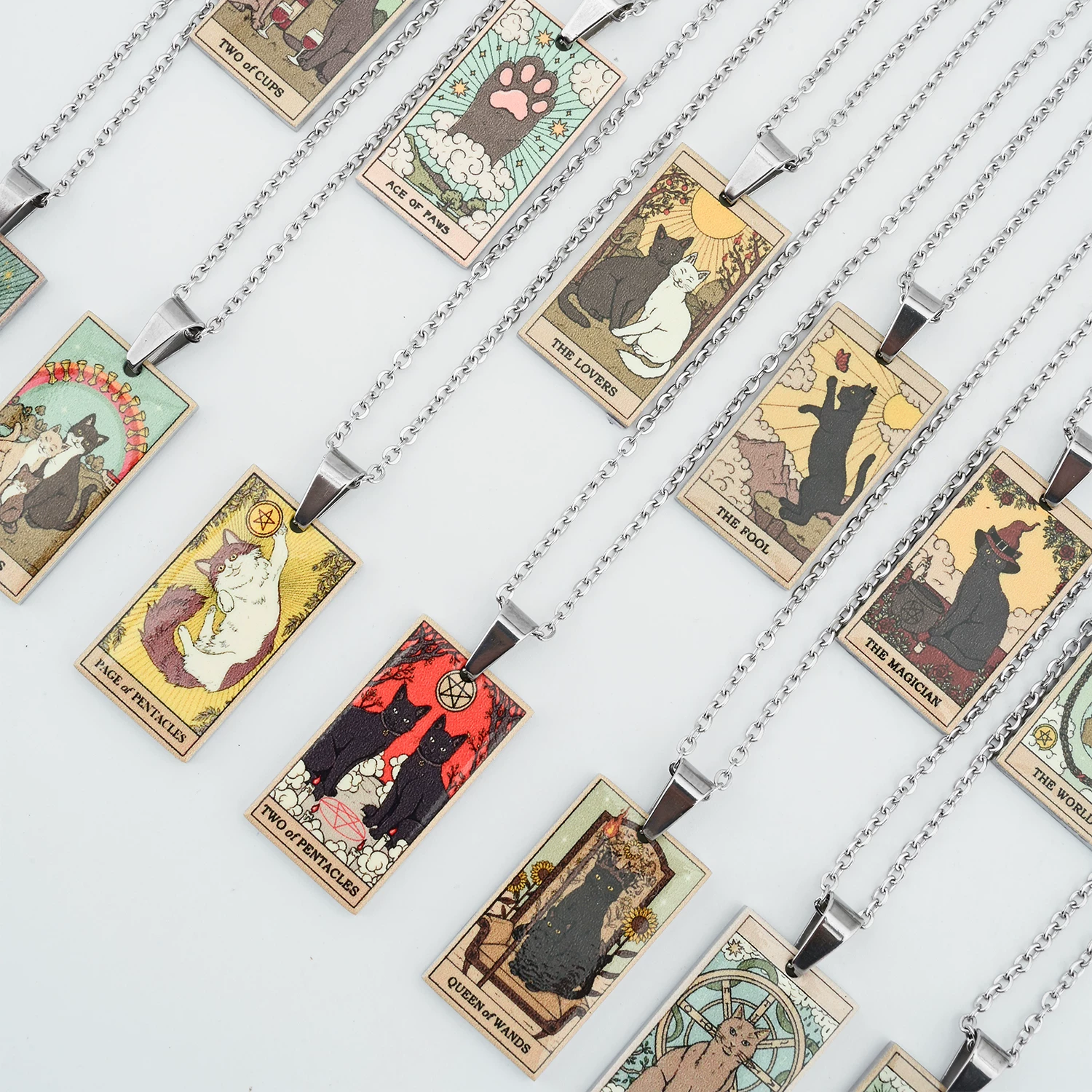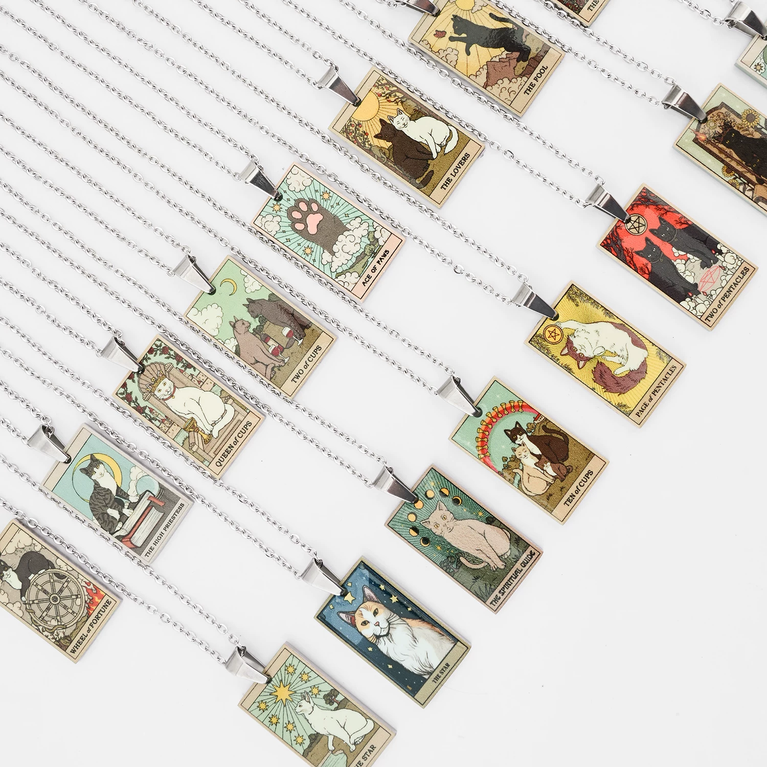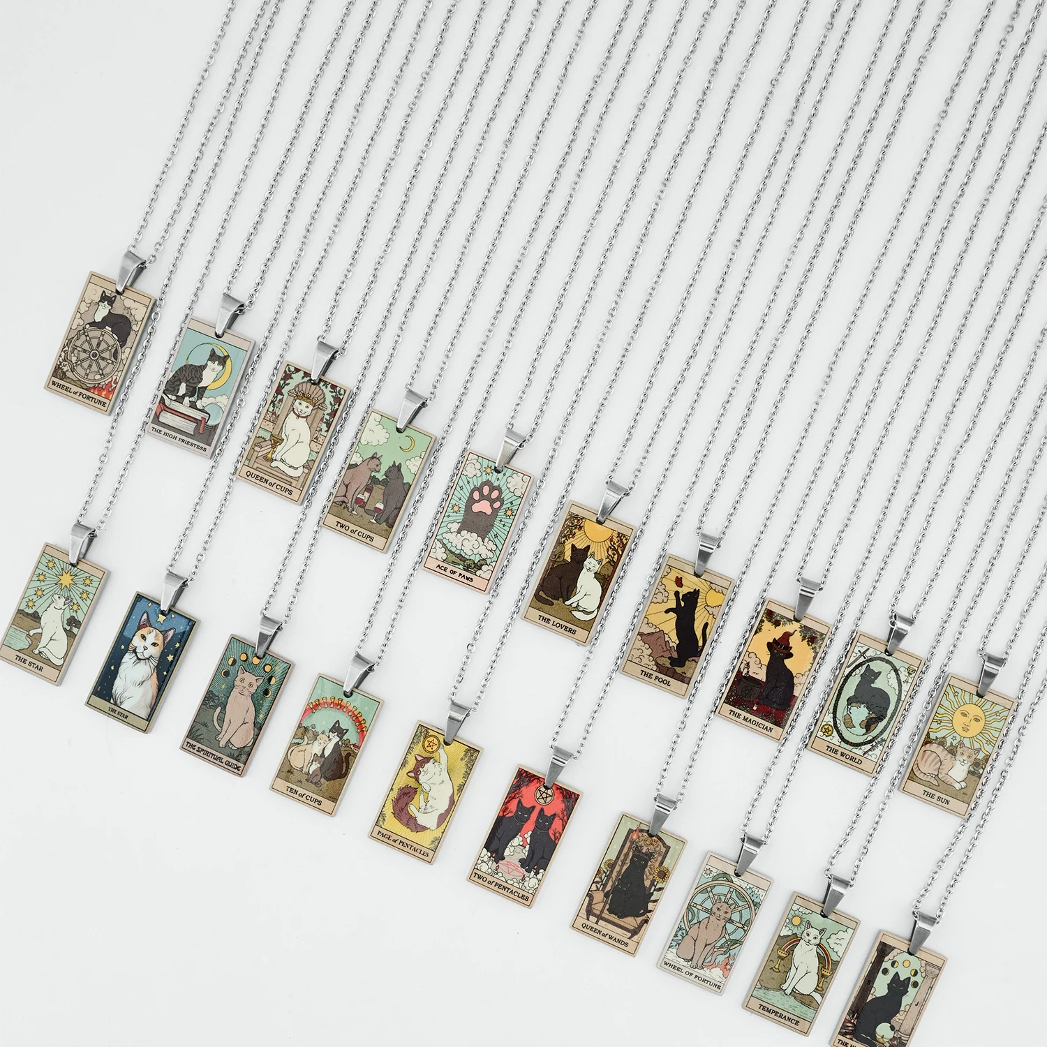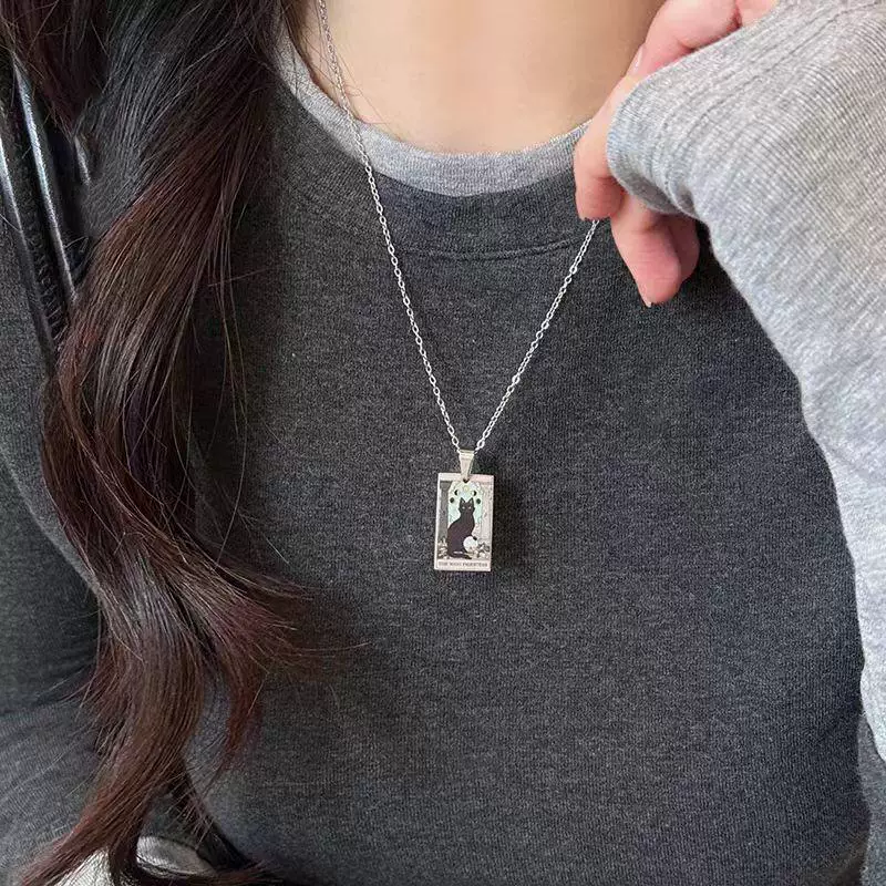 This charming necklace features a vintage-style tarot card design with a feline twist, crafted on durable titanium-steel for lasting wear. The purrfect accessory for tarot enthusiasts and cat devotees alike.