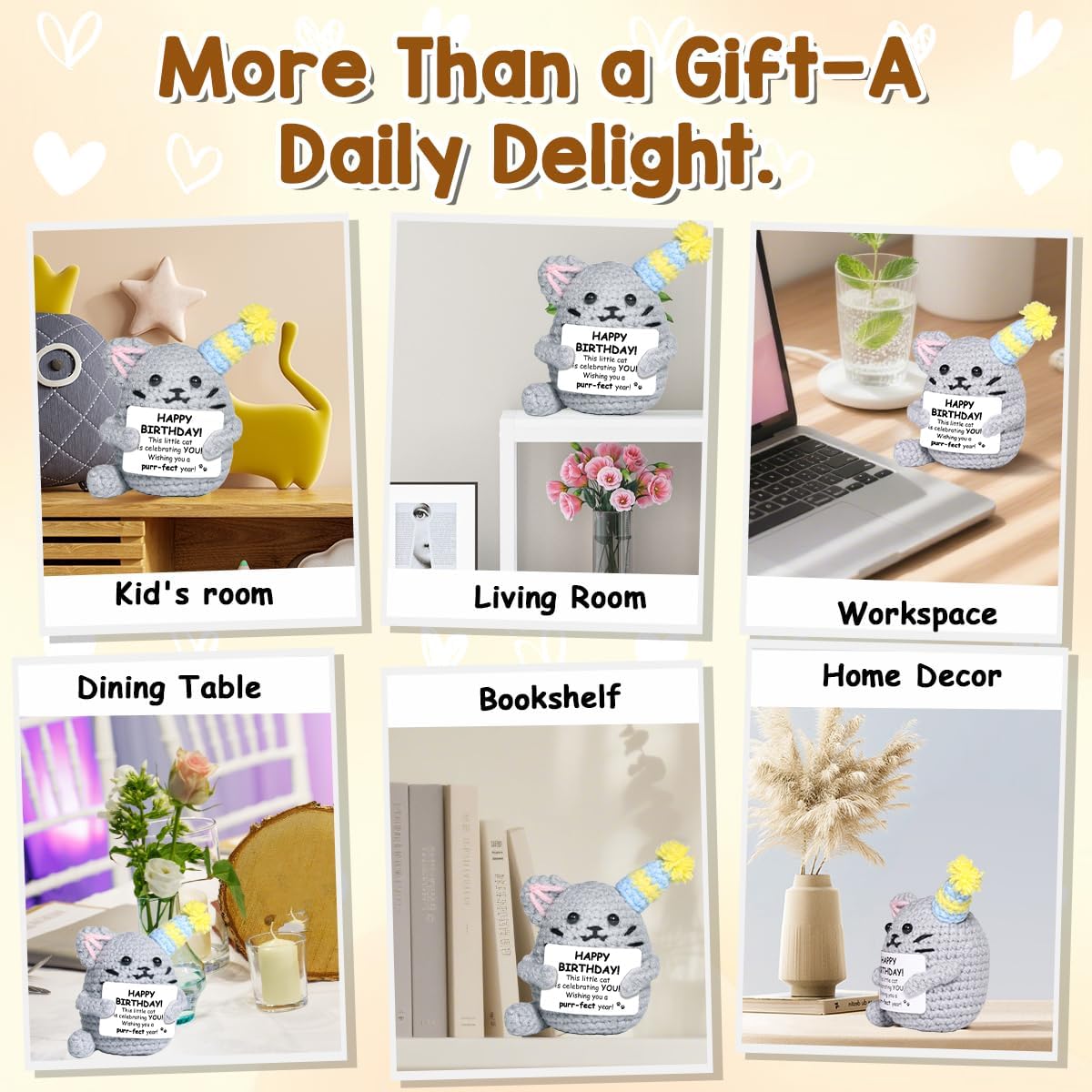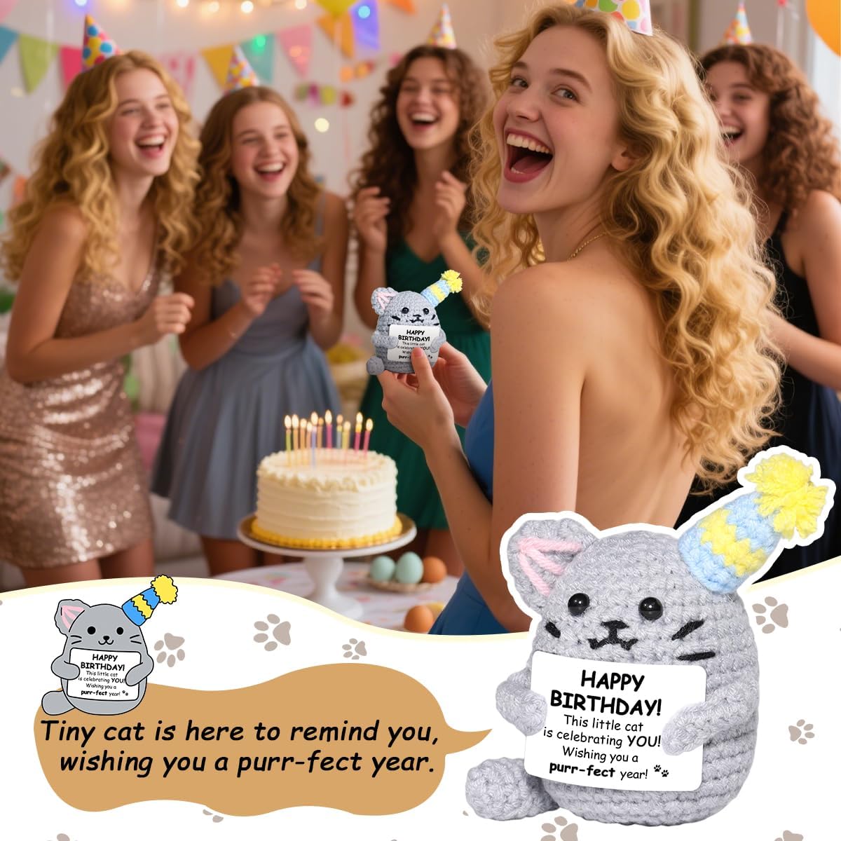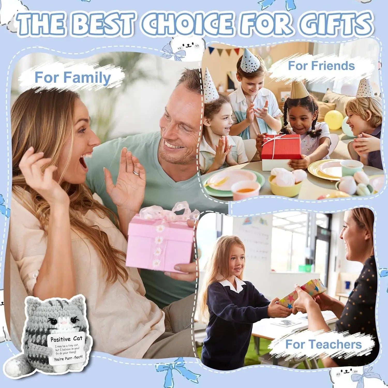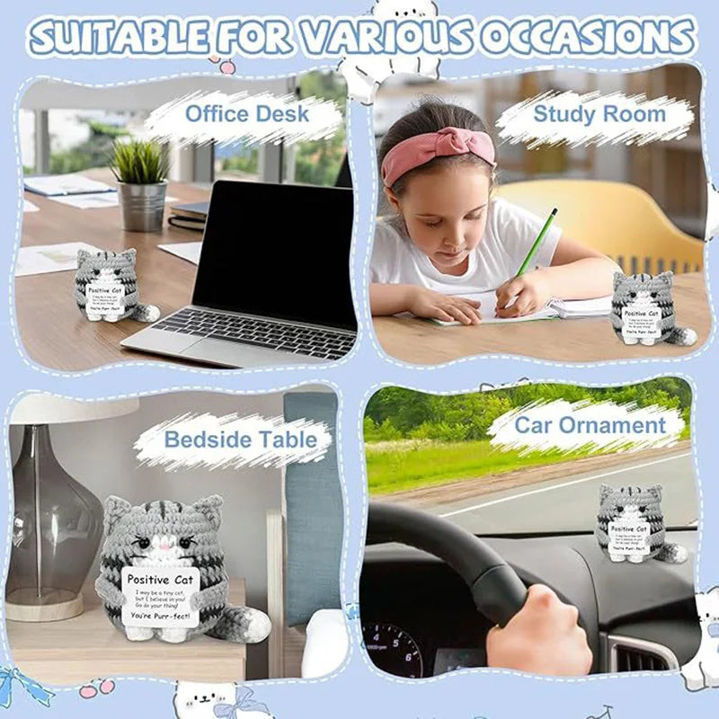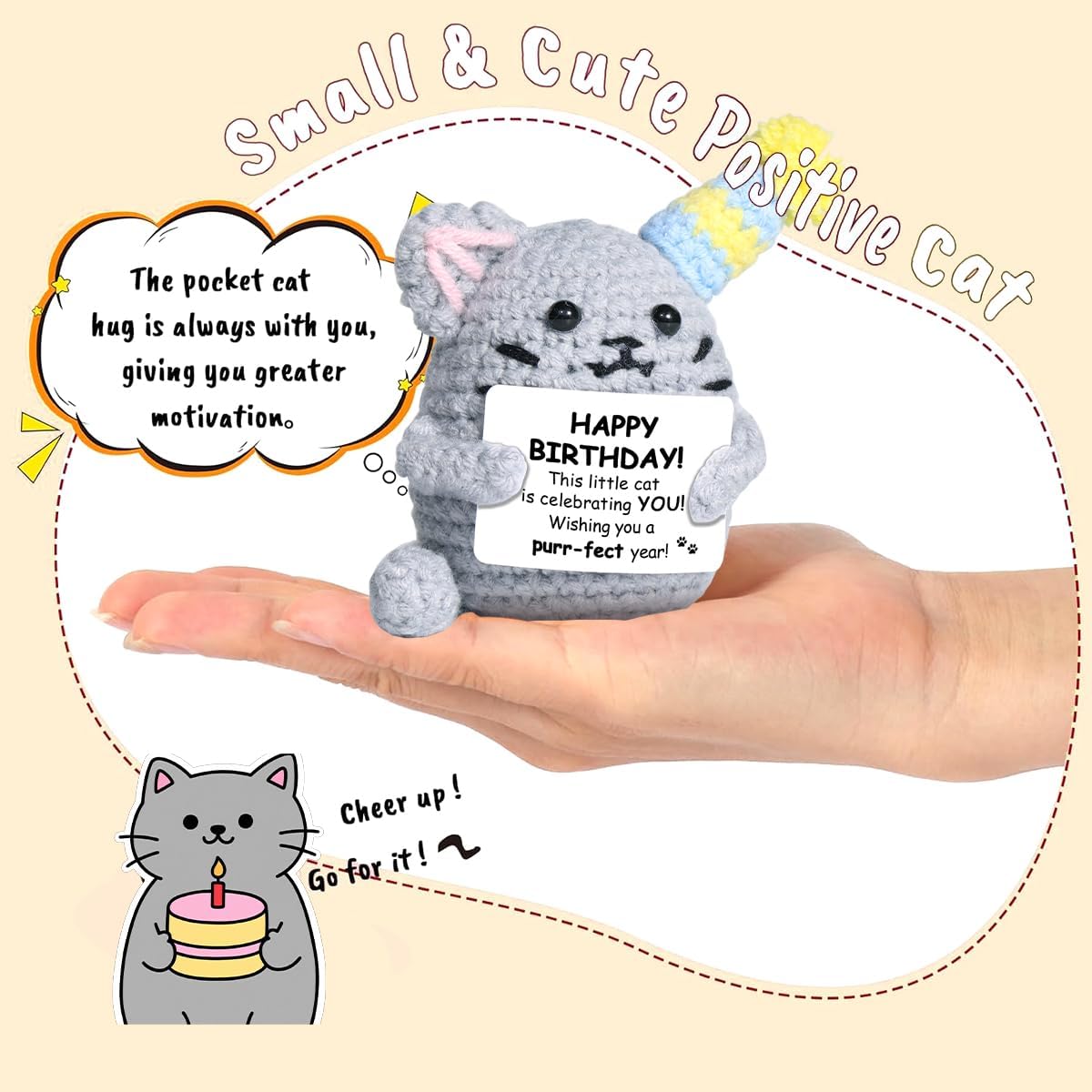 The hand-crocheted Positive Cat is your your adorable emotional support nugget, a warm reminder that " You Are Purr-fect". This cute little nugget is the perfect pick-me-up for anyone who needs a little positivity.