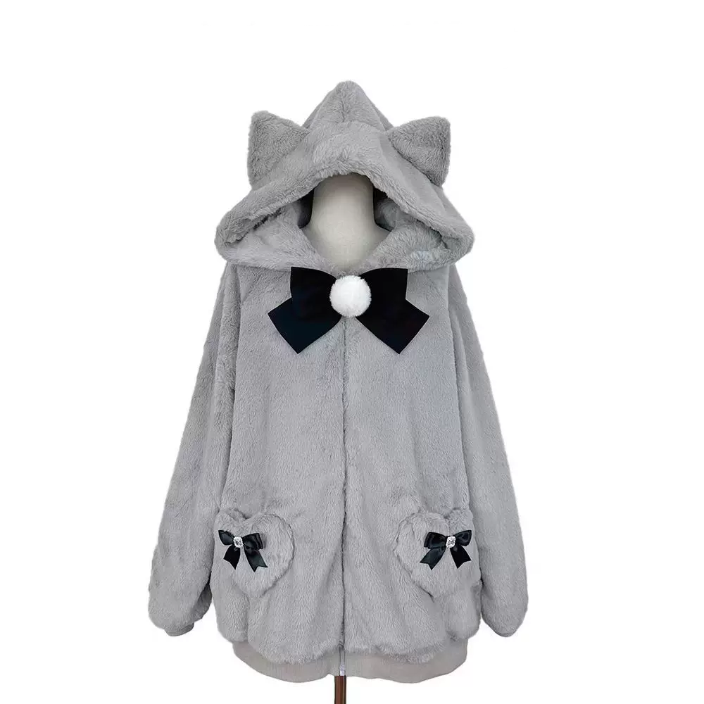 This cozy fleece cat ear jacket blends soft Lolita charm with a bold, modern twist—perfect for winter anime cons, Japanese Jirai Kei inspired streetwear looks, or streaming your cold-season VTuber debut. Designed for fans of kawaii fashion who crave warmth and individuality.