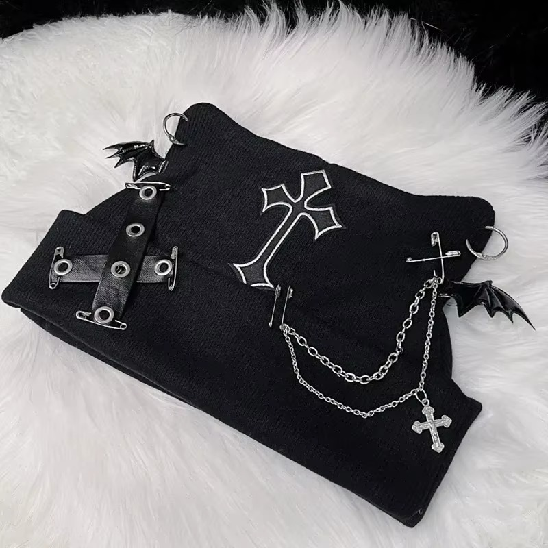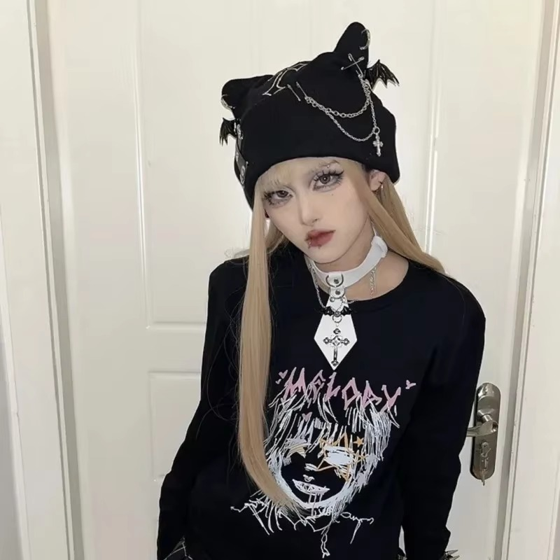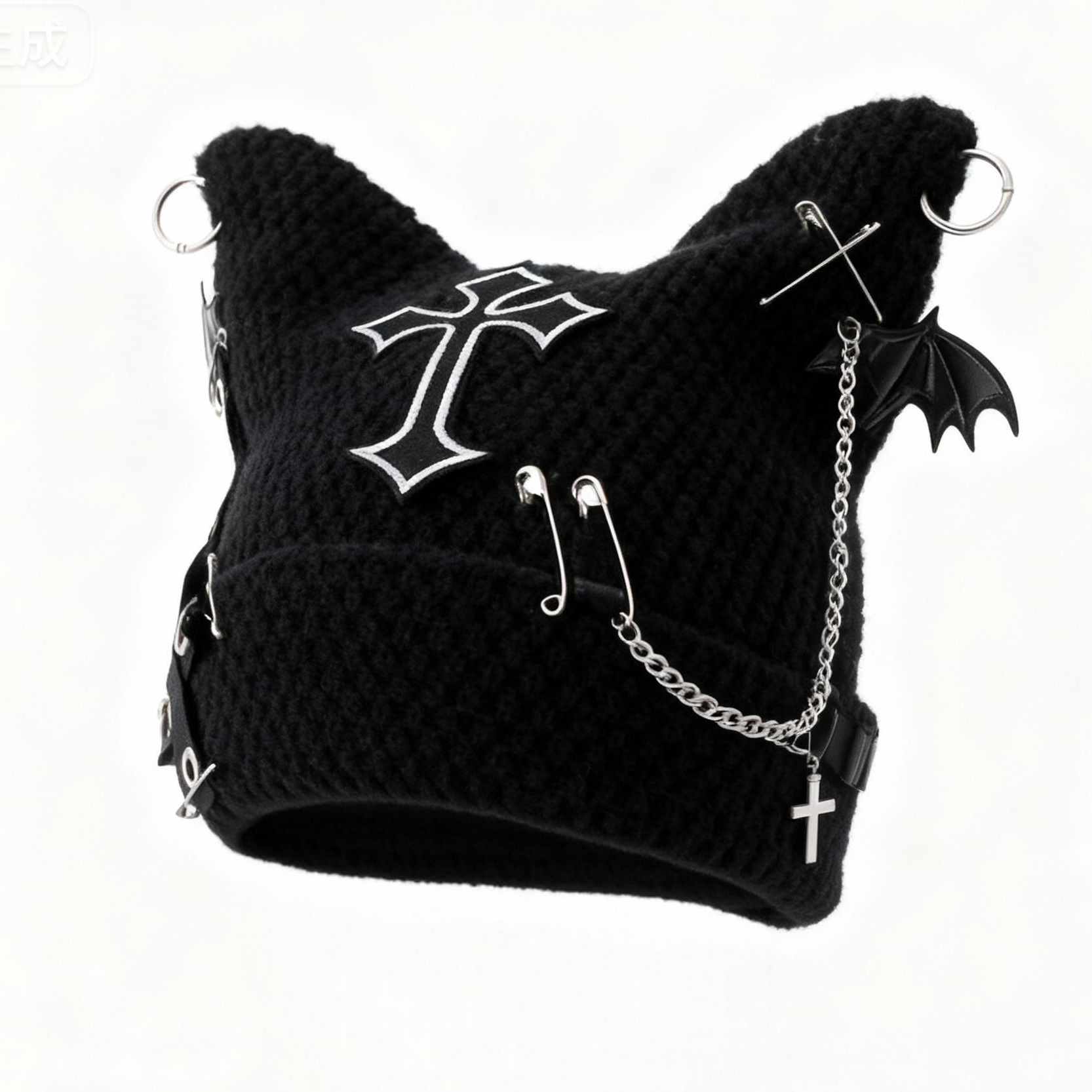 Rock your edgy side with this cozy beanie that's equal parts warmth and attitude. Whether you're dressing up for a costume, capturing the perfect photo moment, or just vibing with your dark aesthetic, this one-size-fits-most beanie delivers serious style without sacrificing comfort.
