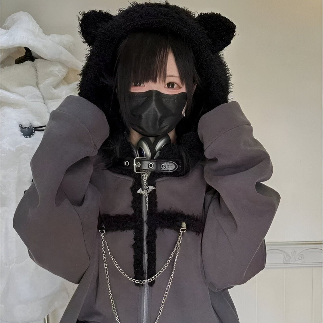 This oversized hoodie fuses dark subculture fashion with Y2K attitude—featuring bold chain details, buckle accents, and fluffy textures that scream alt main character. Whether you're layering for a chilly con, heading to a music fest, or streaming in full edge-core mode, this hoodie’s got you covered—literally and stylistically.
