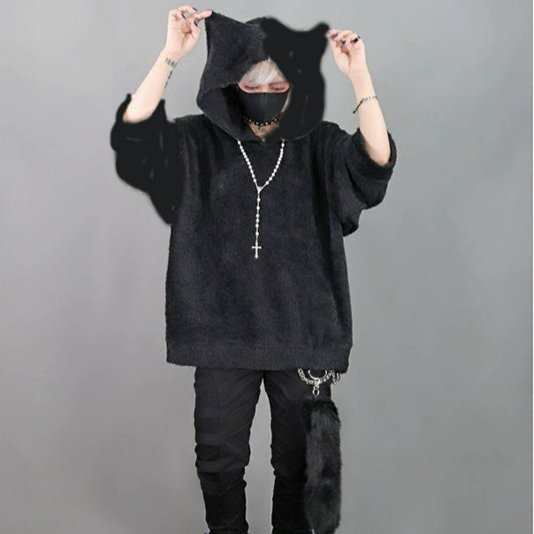Snuggle into the Mistical Black Cat Hoodie, your new go-to for cozy vibes and cute style. This super soft, oversized hoodie features playful cat ears on the hood for that fun anime look. Its all-black design adds a cool edge, perfect for lounging, streetwear, or streaming in style. Lightweight and comfy, it’s great for layering or wearing on its own all year round. Get ready to show off your purr-sonality!