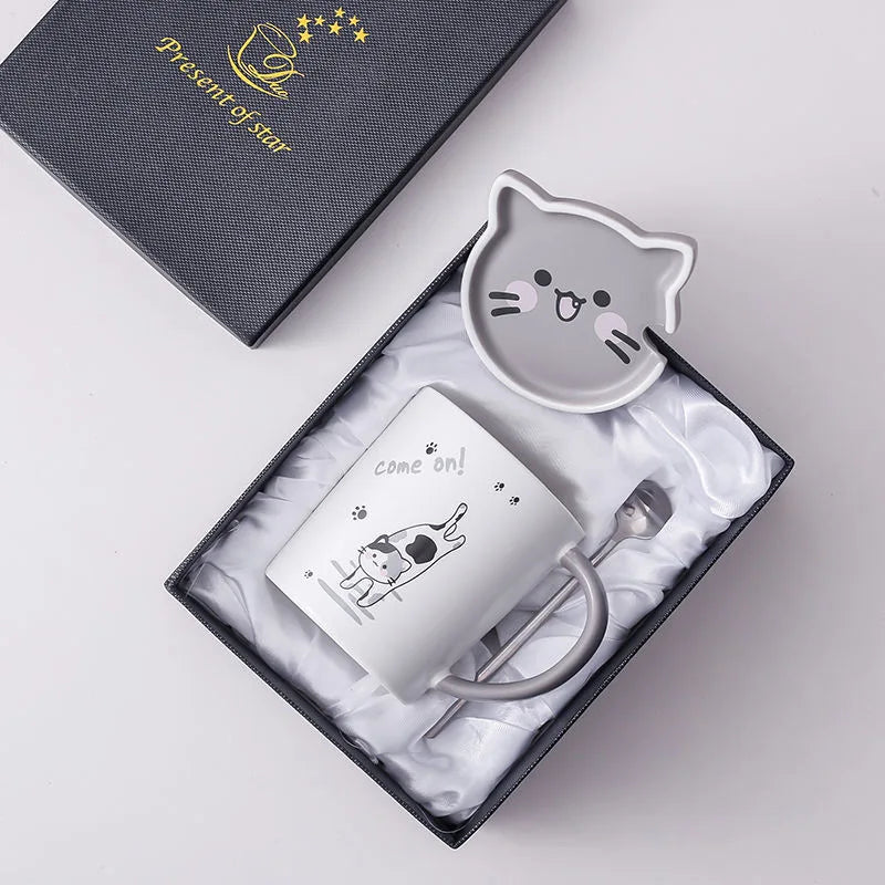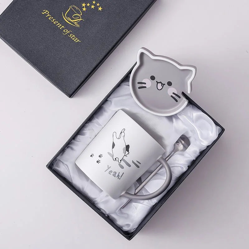 Enjoy a touch of feline charm with this playful kitty ceramic mug set designed to make every zy. Featuring a cute cartoon cat, plus a lid and spoon, it adds both function and fun to your daily routine.