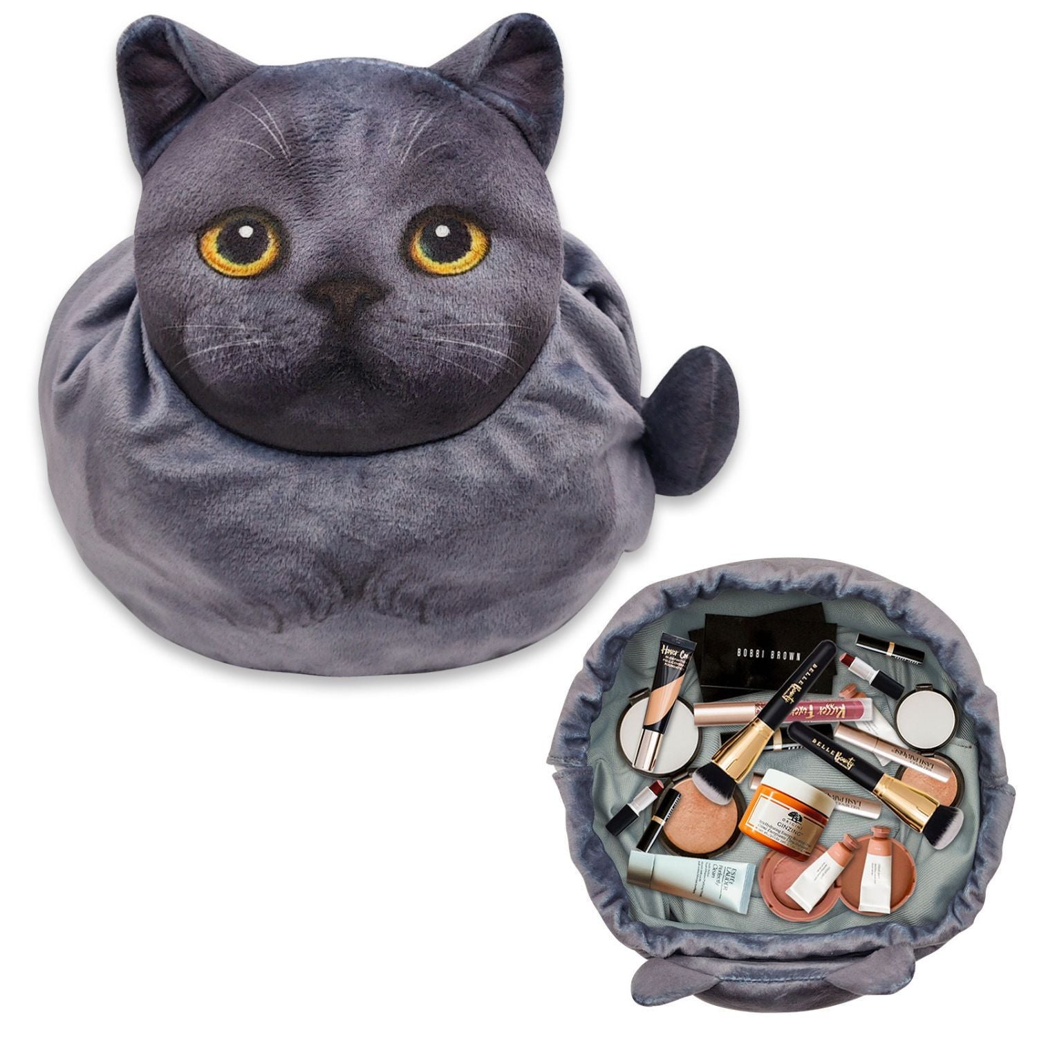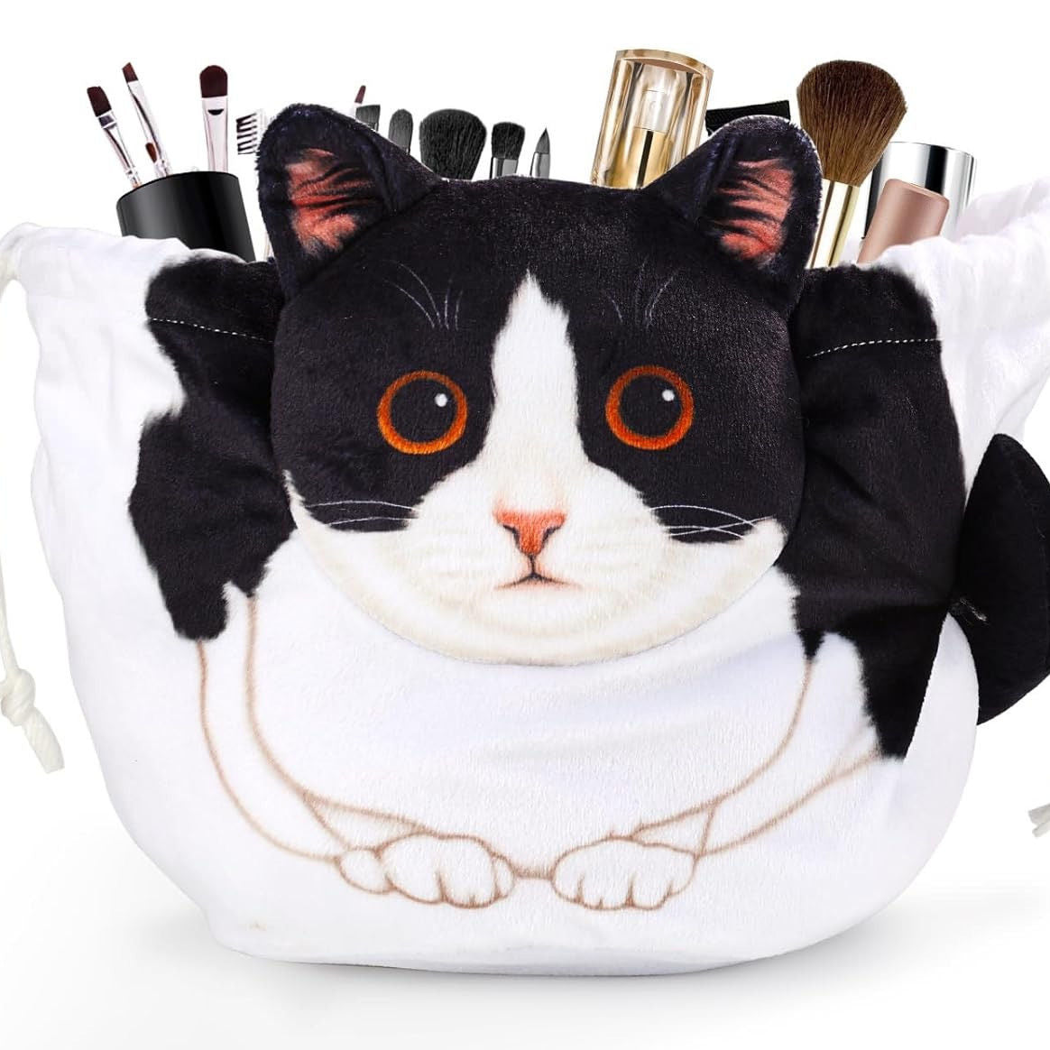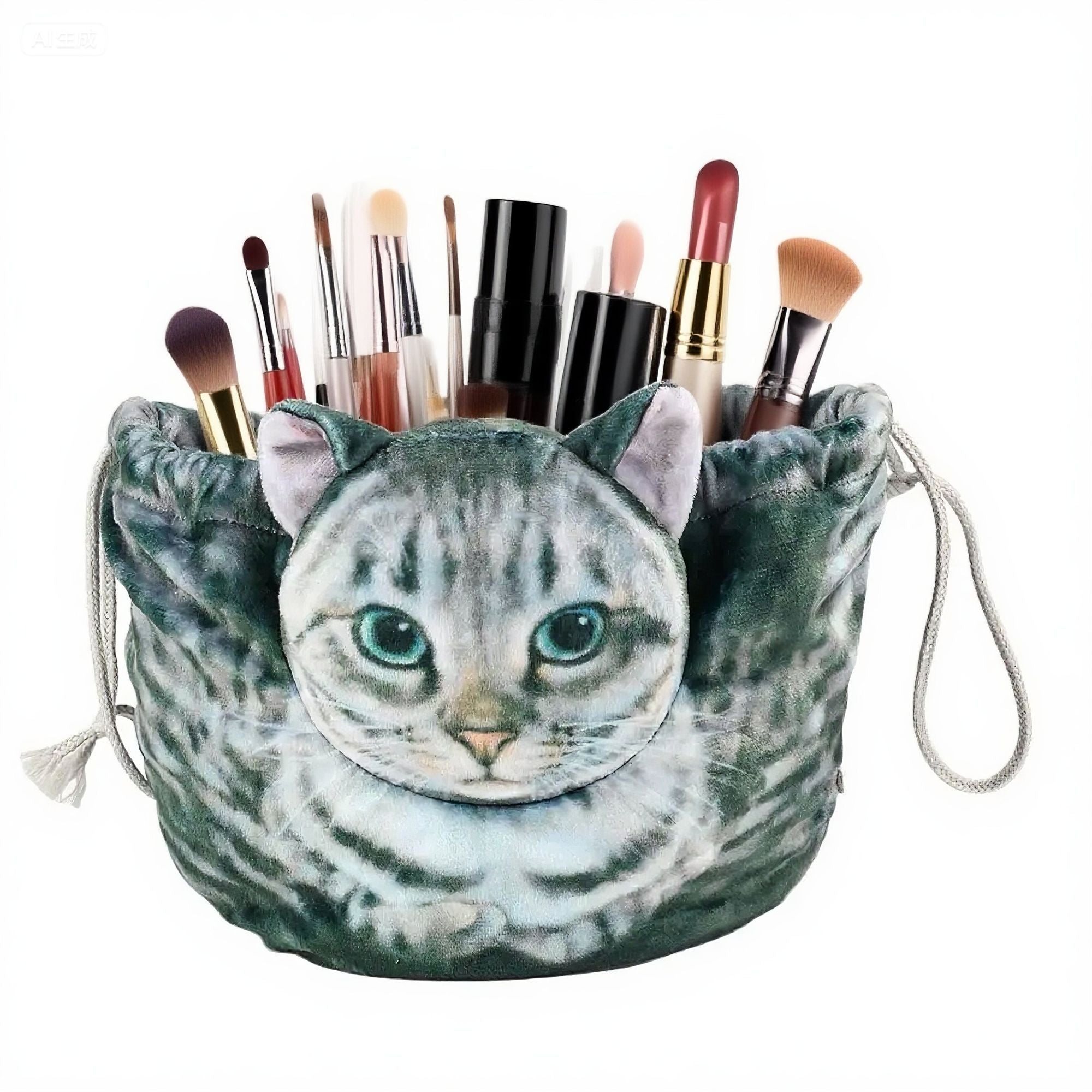 Meet your new everyday makeup buddy! This plush Cat Drawstring Makeup Bag keeps all your brushes, cosmetics, and essentials organized with an irresistibly cute design. Soft, spacious, and easy to carry, it cinches closed to keep everything secure—perfect for home use, travel, or gifting to your favorite cat lover.
