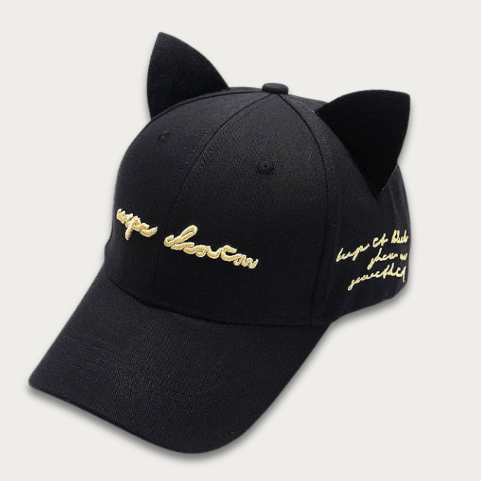 Classic baseball cap silhouette with stitched cat ears for signature kawaii style.
