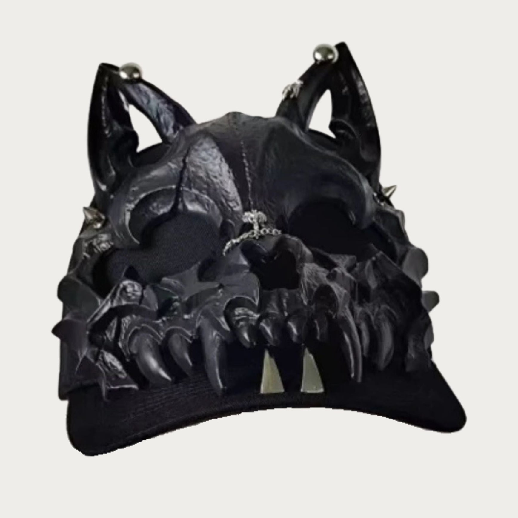 3D sculpted cat skull design with exaggerated fangs and spikes = maximum intimidation.