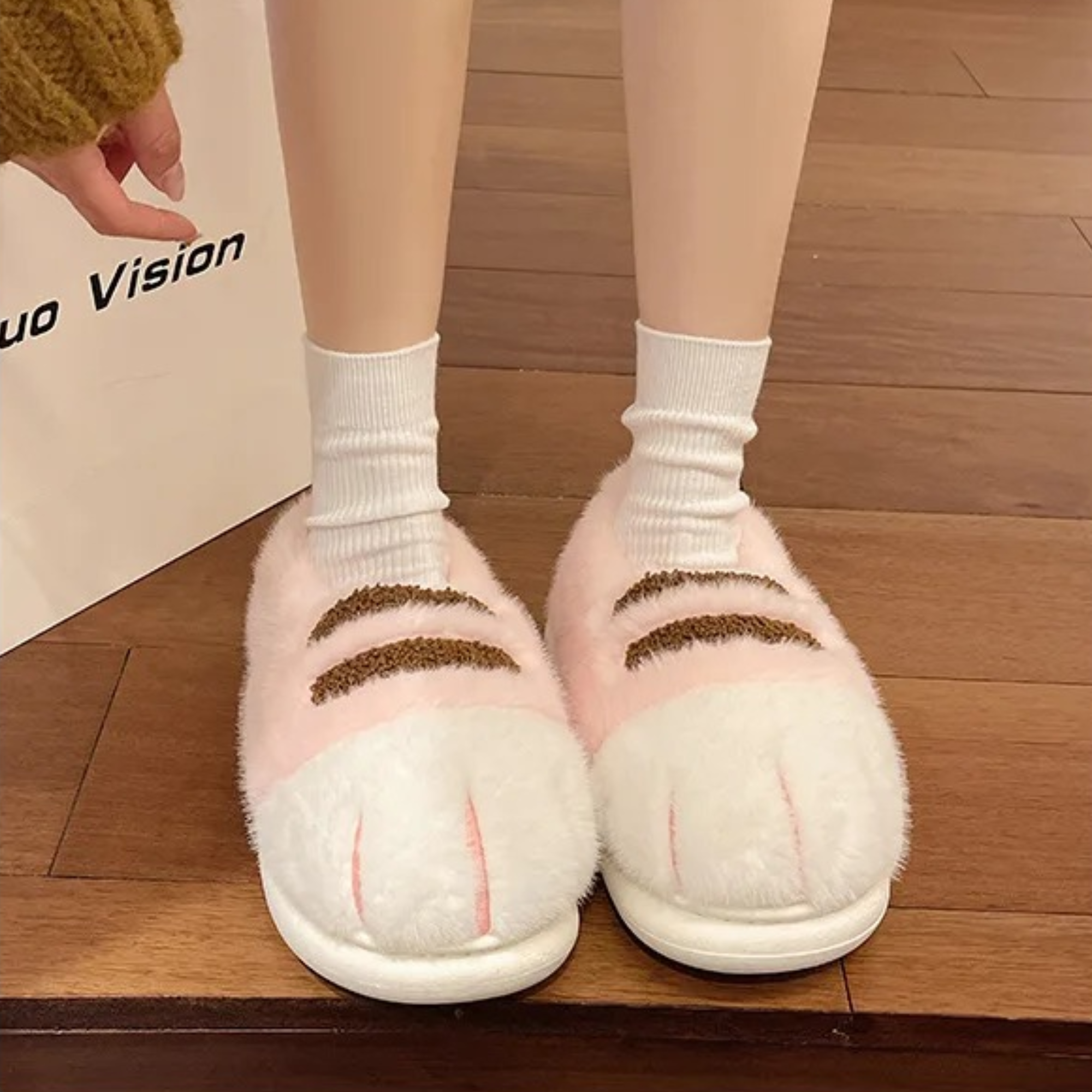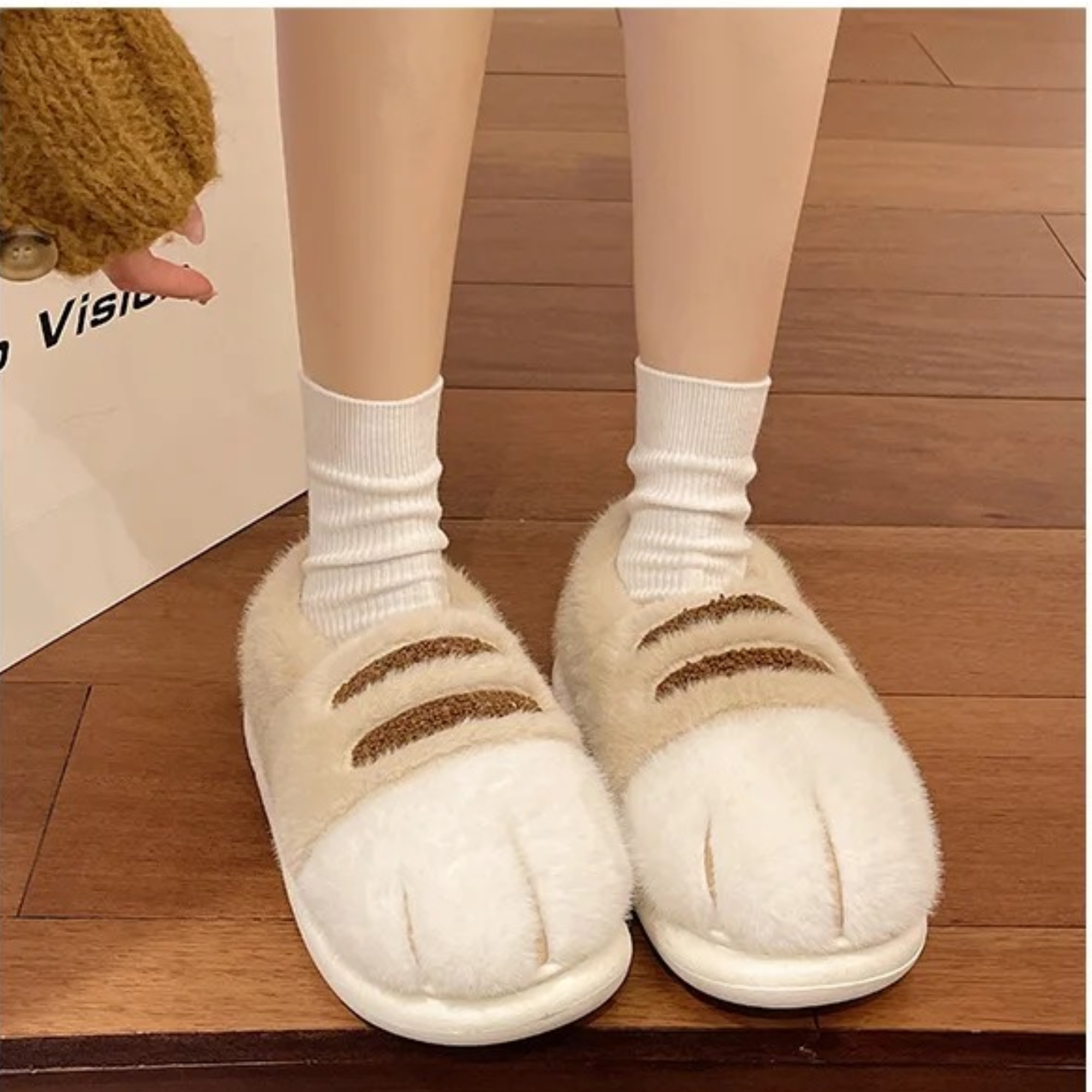 Package Includes: 1 Pair of Warm 3D Cat Paws Furry Slippers